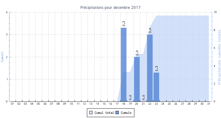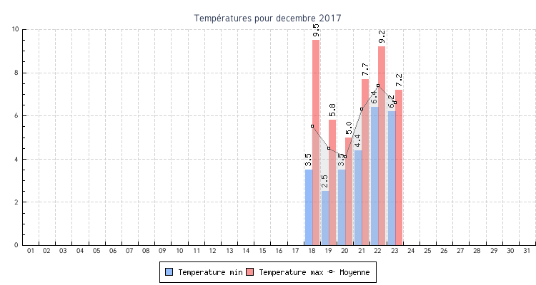 | Total | 2.5 °C | 9.5 °C | 5.7 °C | 4.1 km/h (31.3 km/h) | NNO |